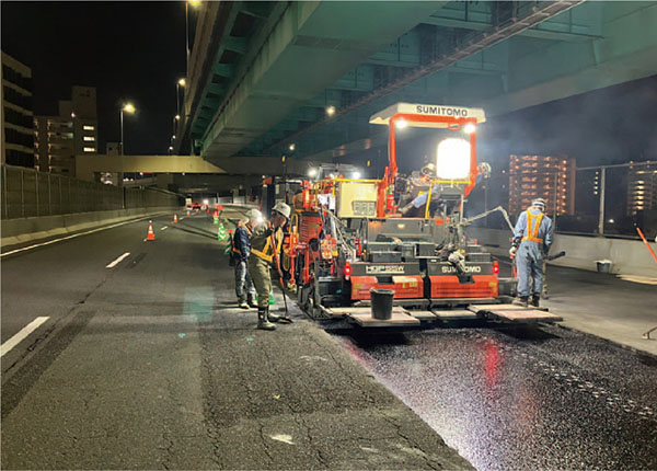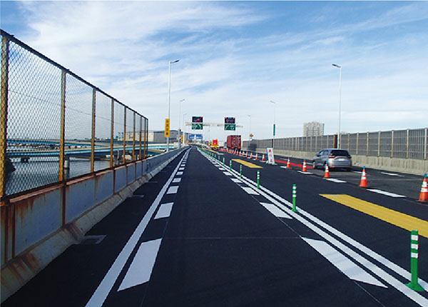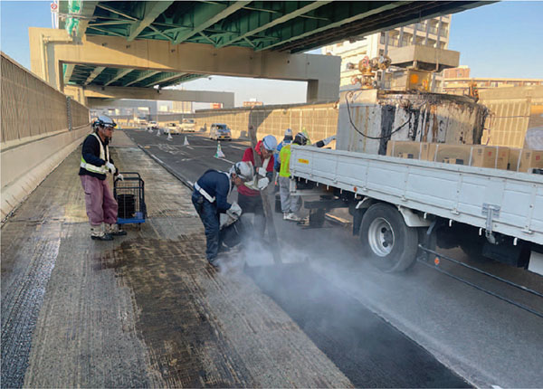 傷んだ舗装を打換えることで、安全性・走行性の向上を図ります。また、新たに床版防水を行い、床版の損傷の進行を防ぎ、長寿命化も図ります。