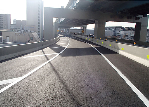 工事区域内に設置されている標識や視線誘導標などの取替え、損傷した高欄の補修などを舗装工事と併せて実施し、安全性の向上を図ります。
